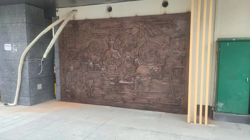 新都區(qū)中醫(yī)藥材市場紫銅浮雕 地雕 玻璃鋼人物雕塑